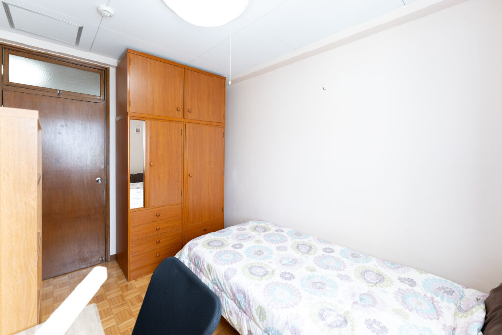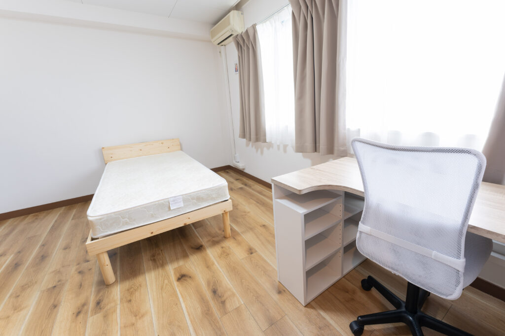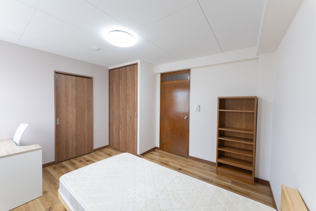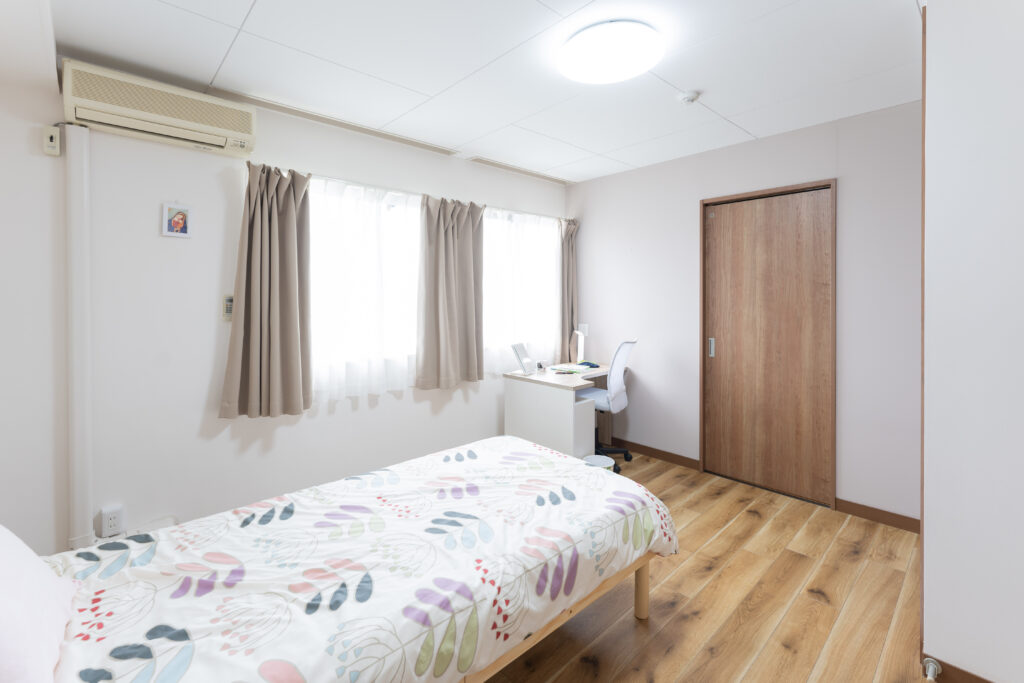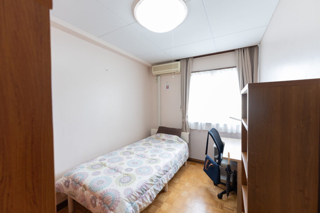 落ち着いた雰囲気の個室に、共同の洗面所・シャワー・お手洗いを備えたスタンダードタイプ。寮生同士の交流が自然に生まれ、初めての一人暮らしにも安心の環境です。