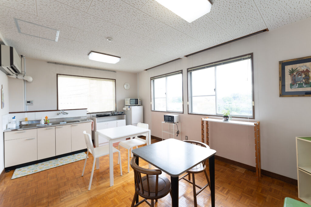 キッチン、冷蔵庫、電子レンジ、ガスコンロ、IHコンロ、ウォーターサーバーを備えています。自炊や団らんなど、多目的に利用できます。